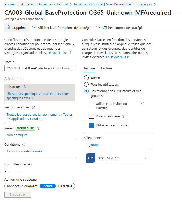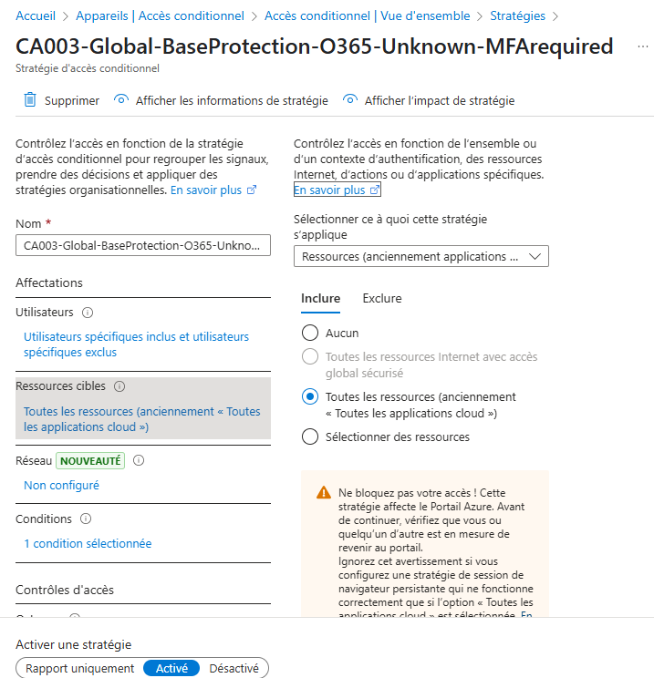 Son nom est : CA003-Global-BaseProtection-O365-Unknown-MFArequired