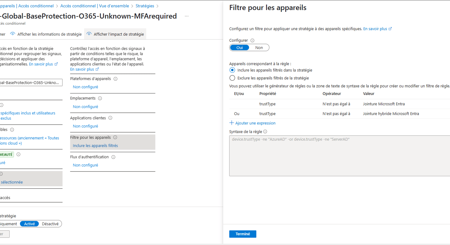 Enfin, cette stratégie s'applique sur les postes qui ne sont pas joints à Microsoft Entra cloud et Microsoft Entra hybride.