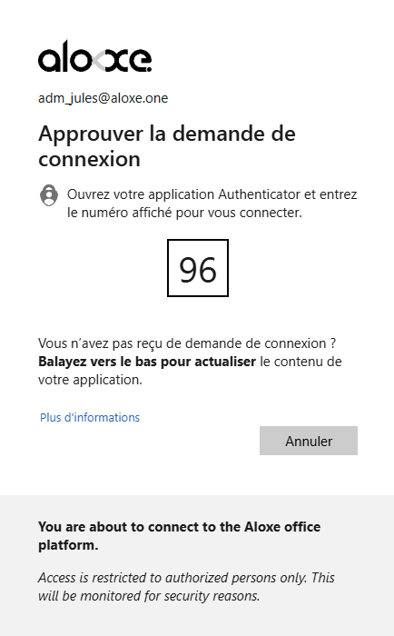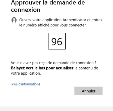 Voici ci dessous, un exemple de demande de MFA pour une authentification lors d'une connexion: