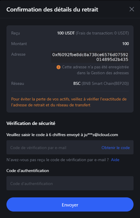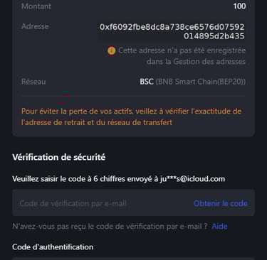 Afin de confirmer l'envoi, je suis amener à valider la transaction de deux façons différentes :