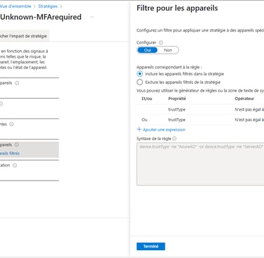 Avec Azure AD Conditional Access, nous avons programmé la demande de MFA si la connexion au service Microsoft provient d'un poste qui n'est pas connu ni enrôlé dans notre environnement Aloxe.